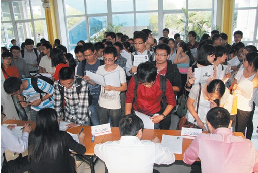 宣講會后,投遞簡歷和參加面試的隊(duì)伍排成了長龍,將報(bào)告廳外的走廊堵得水泄不通。有的同學(xué)為了這場招聘會準(zhǔn)備了很久,西裝革履、志在必得;有的同學(xué)連中飯都沒吃,坐了3個多小時的車從城市的另一頭趕過來;有的同學(xué)參加完前一天北汽集團(tuán)在同濟(jì)大學(xué)的宣講會,又趕來上海交大再次投遞簡歷,投奔北汽的決心堅(jiān)定不移;還有的是情侶兩人一起來投報(bào),希望能成為北汽的雙職工,在北汽研發(fā)基地的“銀色大廳”舉行集體婚禮……他們中的大多數(shù)人,都是成績優(yōu)秀的研究生甚至博士生。問起北汽最吸引他們的原因,大家眾口一詞地表示:不是薪水待遇,而是北汽“世界500強(qiáng)”的規(guī)模實(shí)力、令人向往的企業(yè)文化以及未來廣闊的發(fā)展前景。“這段時間舉行校園招聘會的企業(yè)很多,但是北汽是我的第一選擇!”浙大材料專業(yè)的研究生宋世燕說。